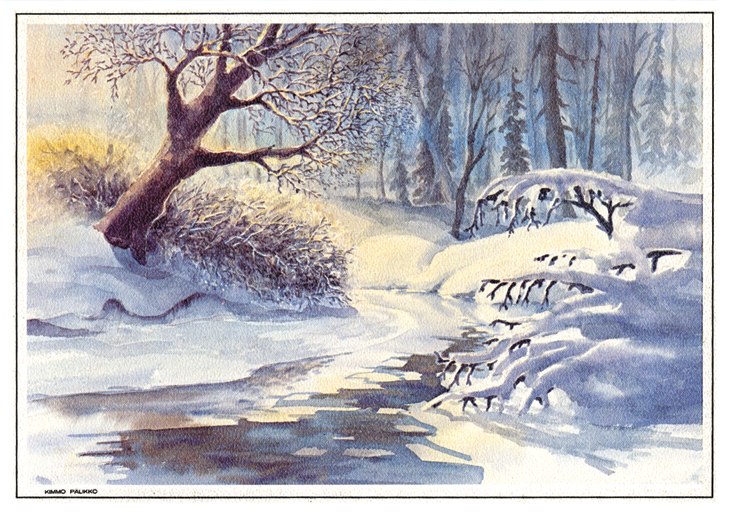 124 "Talviaamu metsässä, 1982, (Paperitaide), tk"